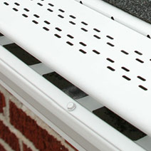 Bulldog gutter guards: These innovative guards are designed to fit on new or existing gutters and they are invisible from the ground for a seamless look. Also made from 98% recycled aluminum, Bulldog gutter guards have a ribbed design, which helps to encourage airflow to allow a breeze to lift debris from the top of your guards. They are available in white or dark bronze.